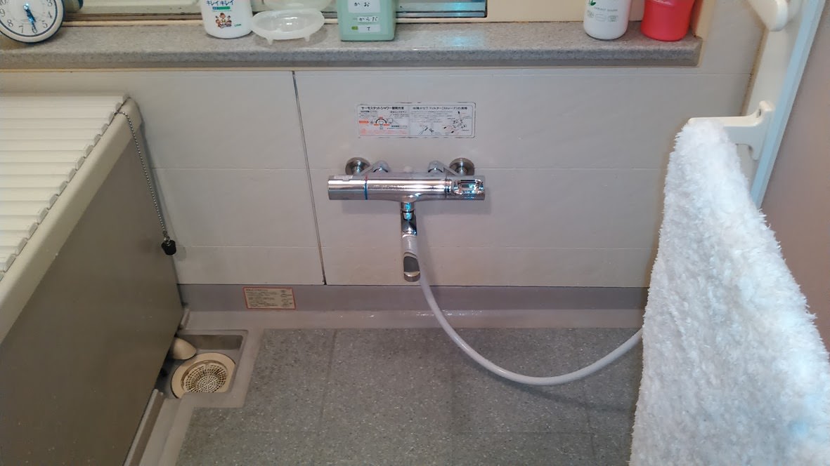 浴室用壁付水栓金具を新品に交換しました。 今付いている水栓の外れ具合によって作業時間は異なりますが、目安として約1時間での交換となります。 長年の水垢が、水栓まわりに固着していますと、水栓の外し作業だけでも1時間かかる場合がございます。 水まわりのお困りごとは、水道局指定工事店のHandyman(ハンディマン)までお気軽にお問い合わせください。