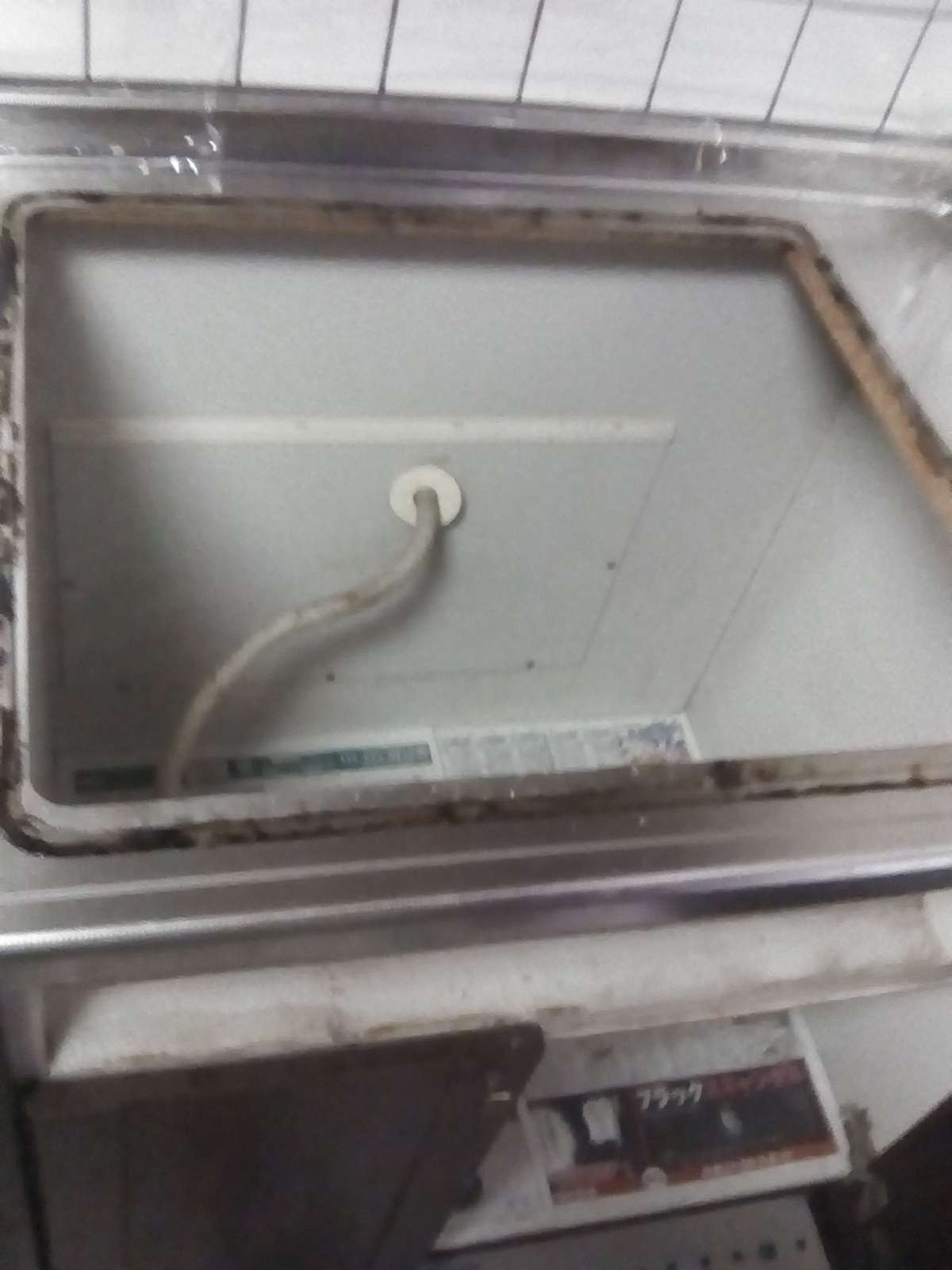 【施工中】 取外してみると、23年分の汚れが付着しています。 でも、23年分の割には驚くほど周りがきれいでした。 毎日お手入れされていたようで、交換作業しながら思っていたのですが、これだけ違うのかと実感しました。 汚れている部分は、もちろん専用の強力な洗剤でしっかり落とします。