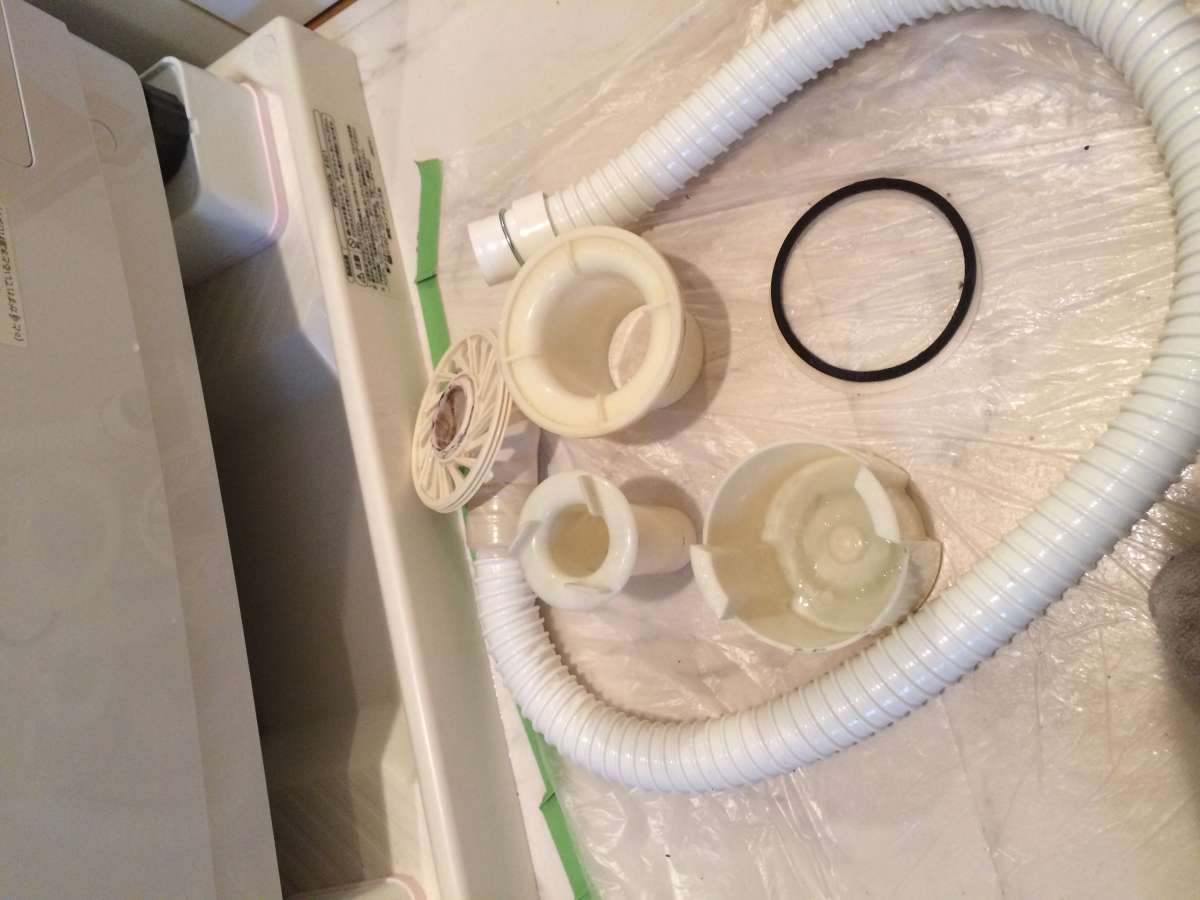 洗濯機付近から異臭がするとのことで、トラップを分解して原因を追究します。 【施工前】