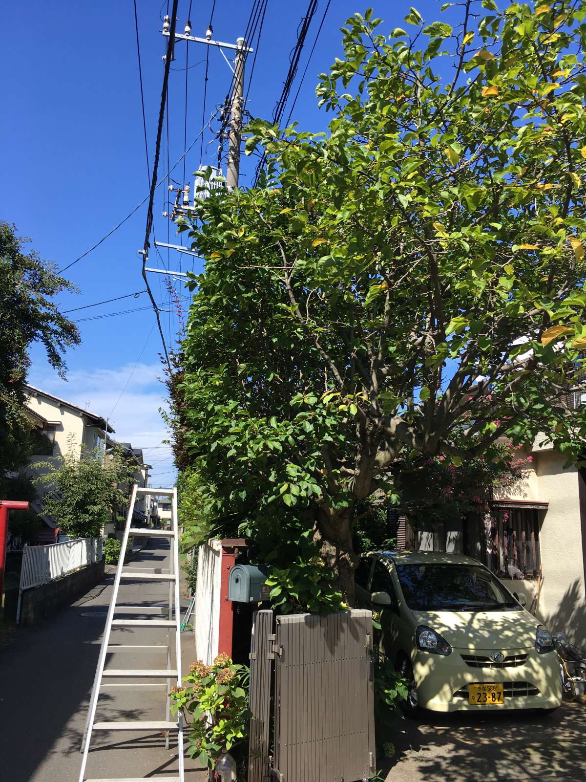 今回は、いつもハンディマンをご利用いただいているお客様宅での「枝切り作業」になります。 道路にはみ出ている枝を切り、さらにキレイに整えます! 【施工前】