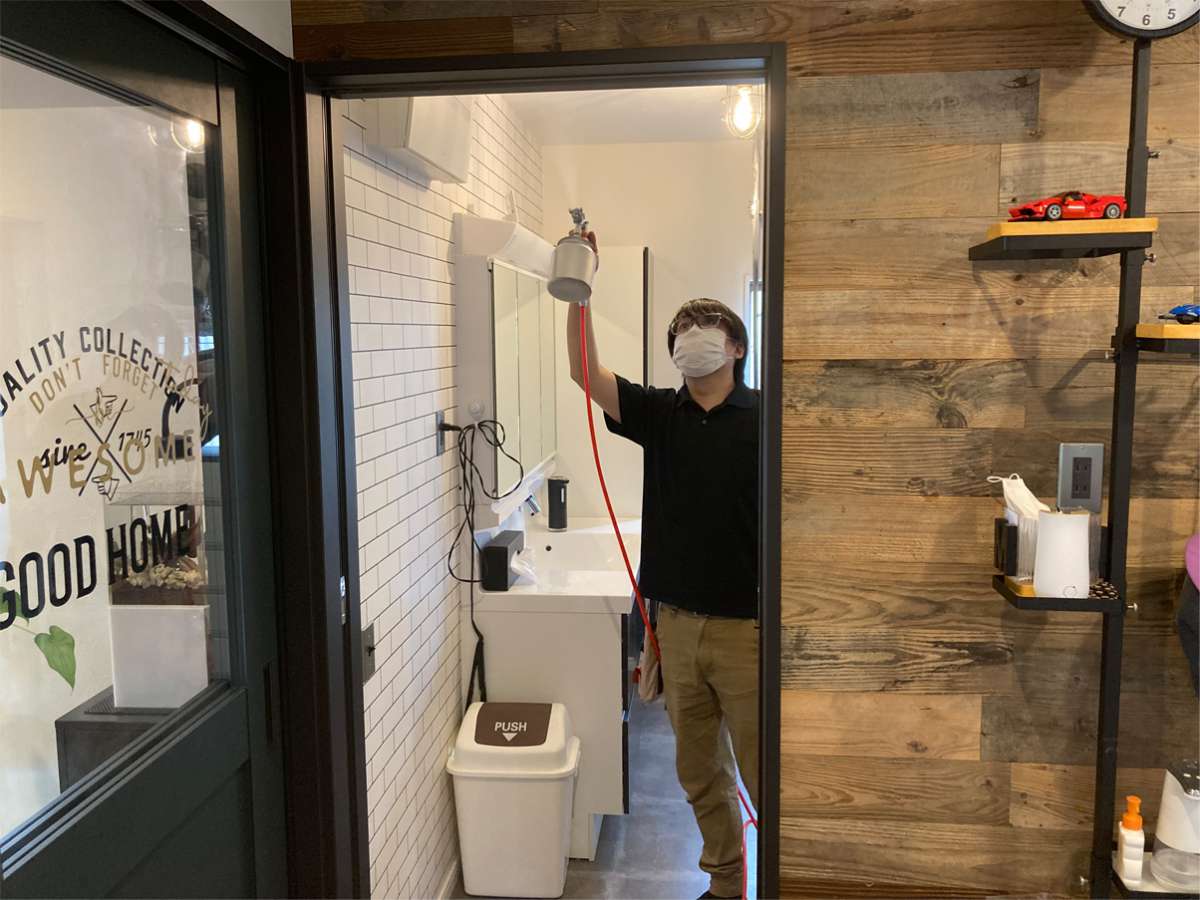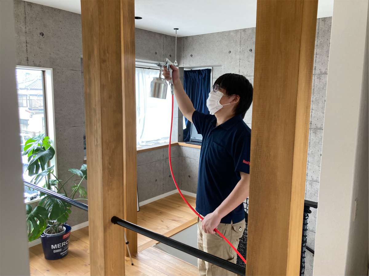 【施工】 お家の中まるまるコーティング処理していきます。 お写真では一部のみご紹介させていただきます。 実際にお客様インタビューもさせていただきましたので、「ハンディマンYoutube」にてご視聴いただければ幸いです。