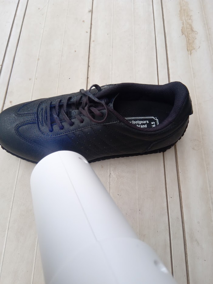 【施工前】 新品の厨房用靴です。 こちらに光触媒を施工していきます。 光触媒には様々な効果が実証されておりますが、その中でも見込める効果として、「抗菌/防臭/防汚/防カビ」が特に期待されます。 厨房ですと、菌や汚れそして臭いなどがどうしても気になりますし、保管している場所によっては、カビの繁殖も気になるところです。