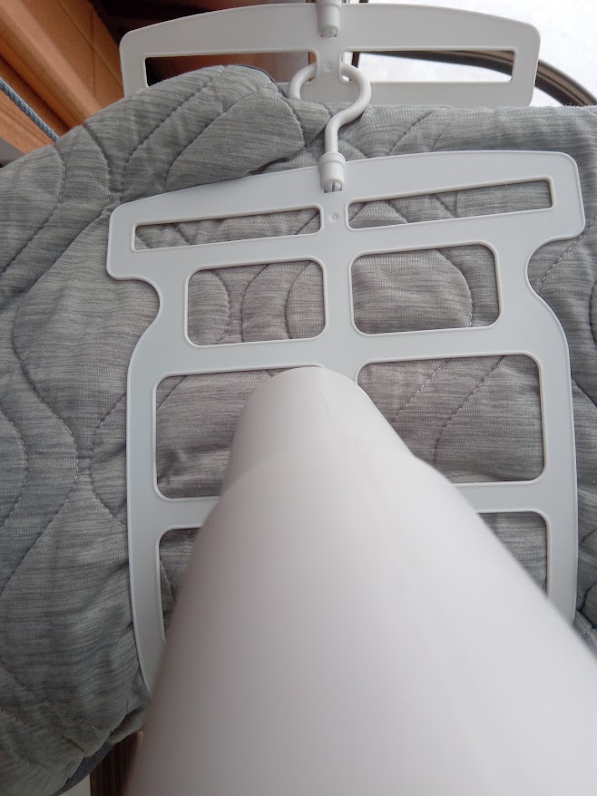 ベランダに枕を普段干されている状況にしていただき、さらに施工しお日様にあてながら乾かしていきます。