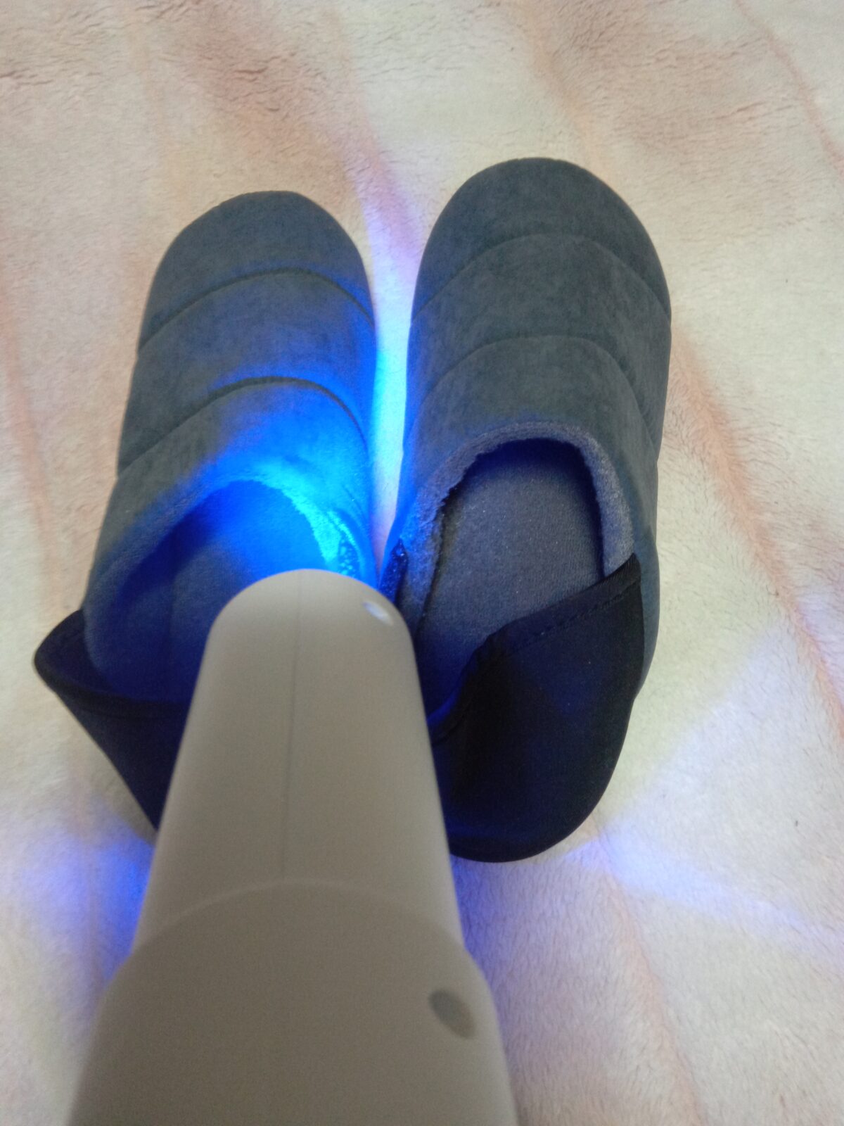 【施工】 新しく購入されたスリッパへのご依頼をいただきました。 結構暖かそうなスリッパ。 冬には最適ですね。 このような素材には、光触媒が定着しやすいので大変オススメです。 スリッパの中の防臭や抗菌、防カビに大変期待できますよ!