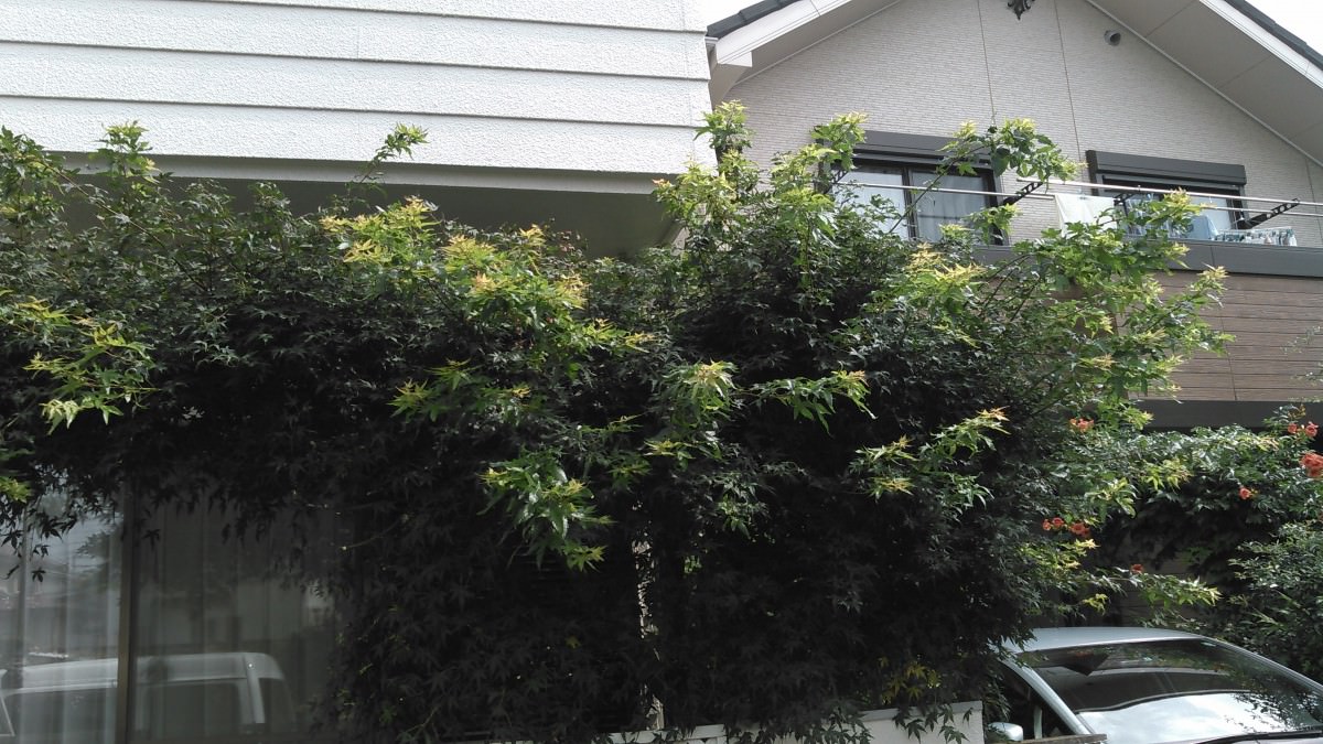 夏に益々成長する庭木。