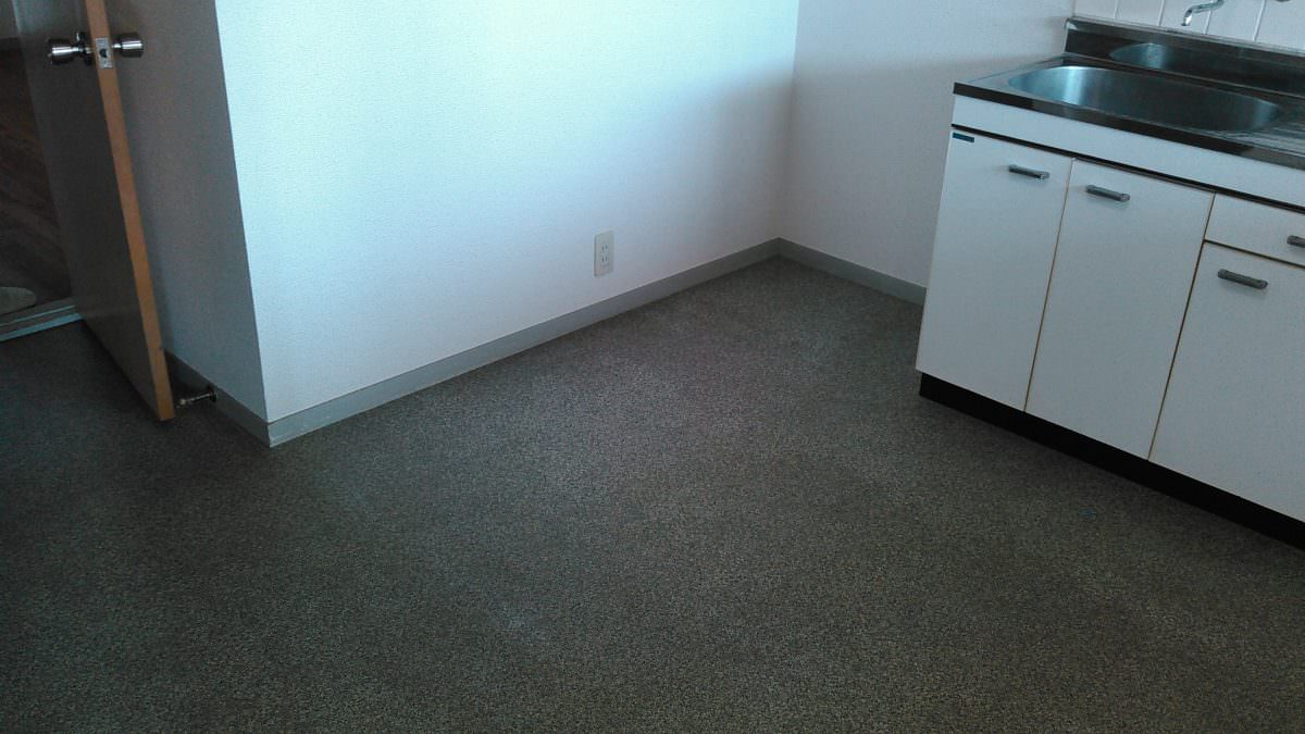 今回は、台所床(クッションフロア)の張替作業事例になります。 床が暗いので、明るい色に張替ました。 【作業前】