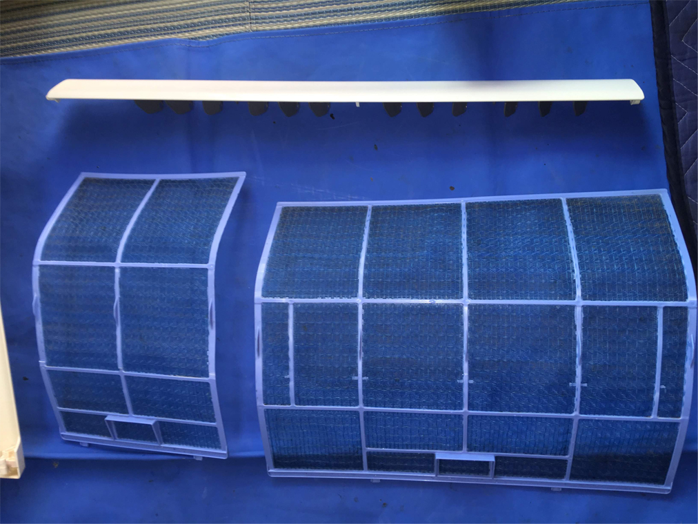 【作業中】 フィルターにホコリがたまっていますね・・・。 中はもっとすごいことになっているのが予想できます。