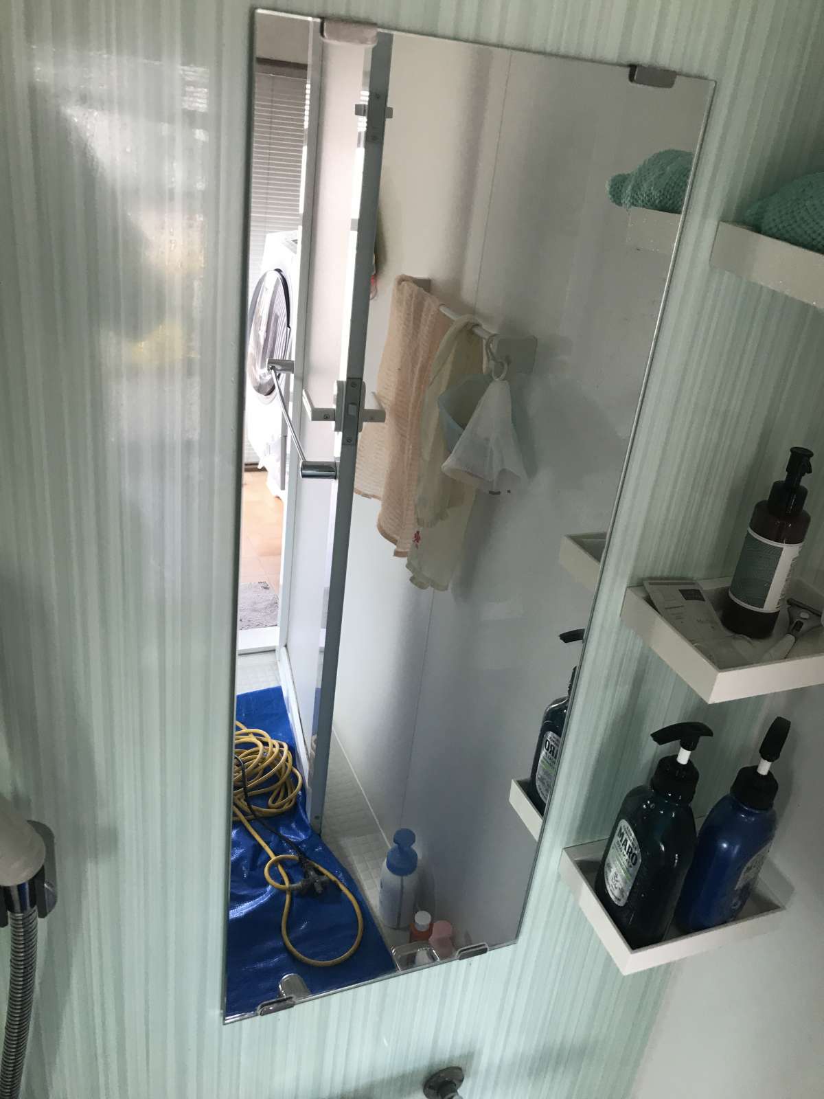 それは、「鏡のうろこ」と言われるものです。 水道水に含まれる「カルキ・カルシウム」などが付着し、水分のみ蒸発して不純物だけが蓄積されていった結果なのです。 これはなかなか落とせません。 無理にこすると、鏡に傷をあたえてしまう可能性もあります。 こういう時はハンディマンにお任せください!