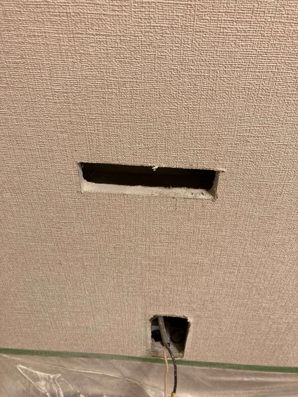【施工中】 設置個所に穴をあけます。 事前に調査や、打ち合わせする必要がありますので、どこでも可能なわけではありません。