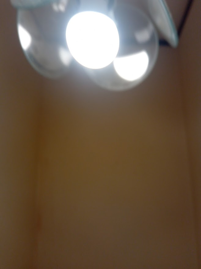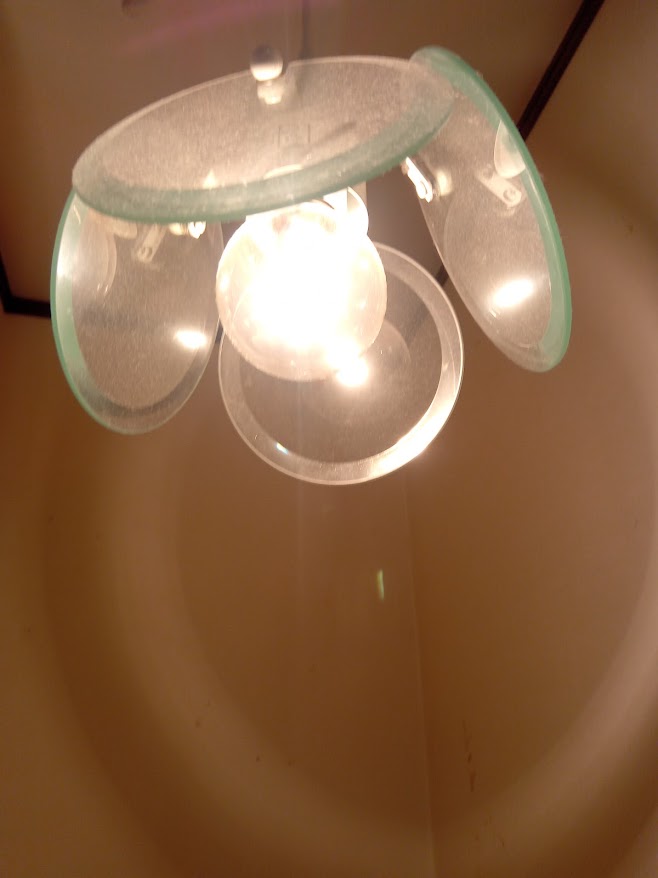 【施工前】 高所作業のため、ピンボケしており申し訳ありません・・・。 まずは現在ついている白熱電球を取り外します。