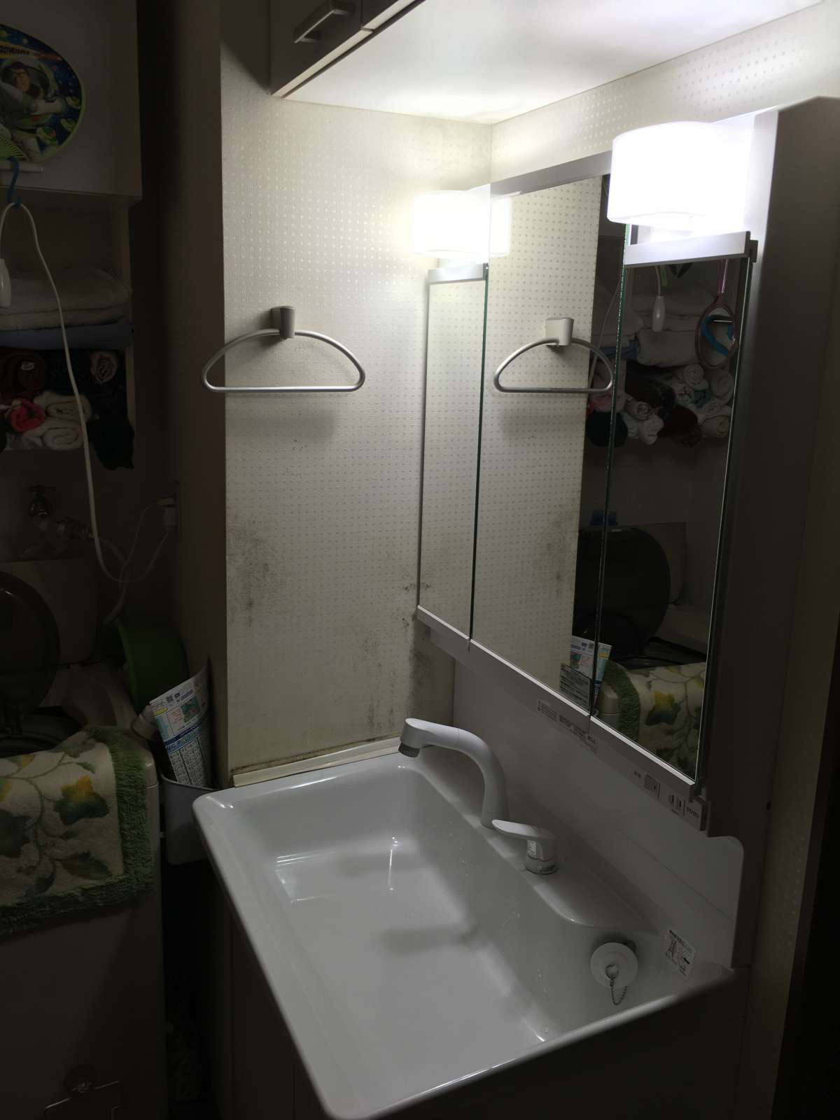 洗面化粧台大人気商品「TOTO KEシリーズ」続々施工!2017年、下期から爆発的な人気の「TOTO」洗面化粧台 おかげさまで、毎日と言っていいほどお問い合わせをいただいております。 さて、今回も先日施工させていただきましたお客様の洗面化粧台施工実績のご紹介です。 【施工前】 ご覧のように、洗面ボウルが破損してしまったことによる交換です