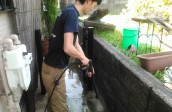 家のまわりを高圧洗浄!