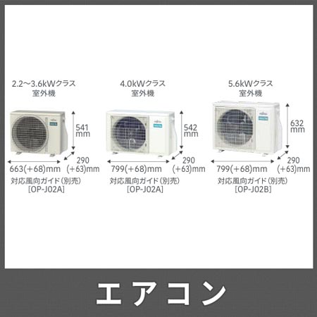 22・25・28型に、幅約66cmの室外機を採用。狭いベランダやバルコニーなど、スペースが限られた場所にも設置できます。