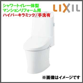LIXIL「アメージュ便器」シャワートイレ一体型便器/マンションリフォーム用「ハイパーキラミック/手洗い有」床上排水155mm