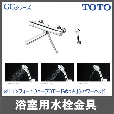 - TOTO浴室用 「GGシリーズ」壁付サーモスタット混合水栓(コンフォートウェーブ3モードめっき)TBV03404J