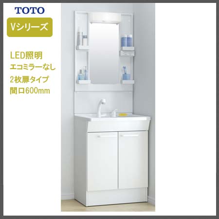 - TOTO Vシリーズ 600幅タイプ 2面鏡(エコミラーなし)LED照明 2枚扉 洗面化粧台