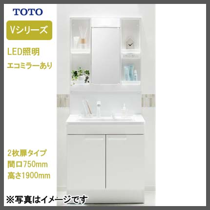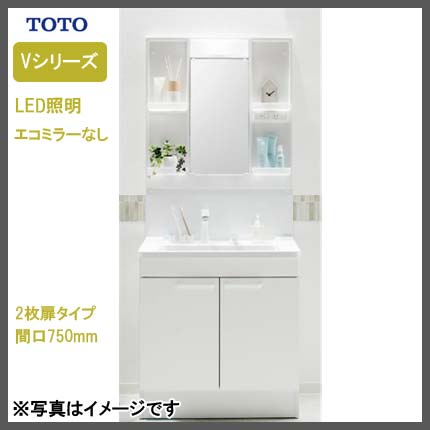 - TOTO Vシリーズ 750幅タイプ 1面鏡(エコミラーあり)LED照明 2枚扉 洗面化粧台