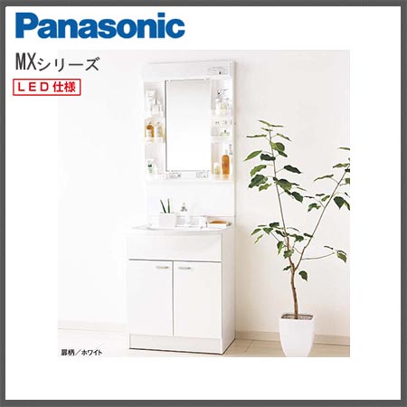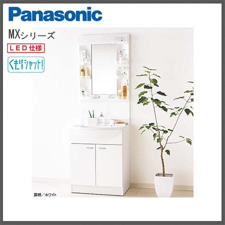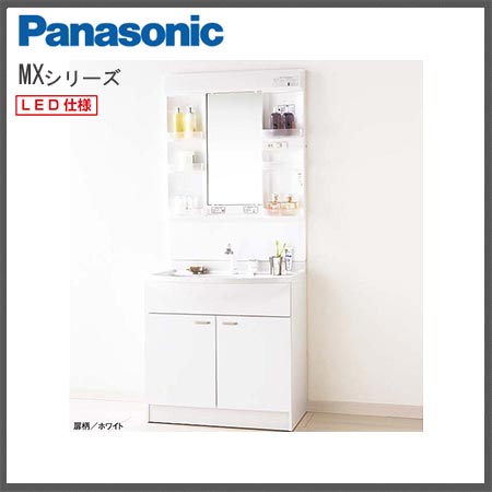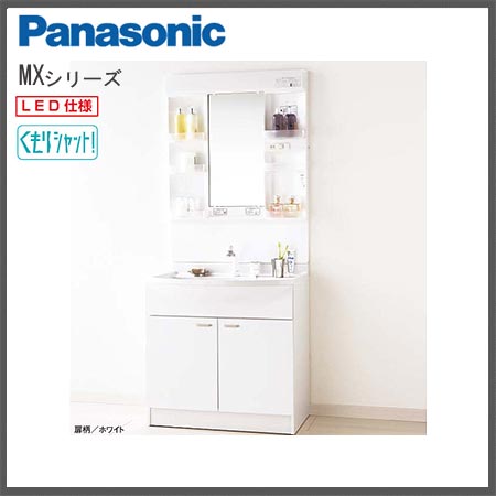 - パナソニック MXシリーズ 洗面化粧台 LED1面鏡 2枚扉 750幅(くもり止め加工付き)