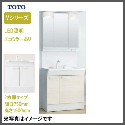 - TOTO Vシリーズ 750幅/高さ1900タイプ 3面鏡(エコミラーあり)LED照明 2枚扉 洗面化粧台