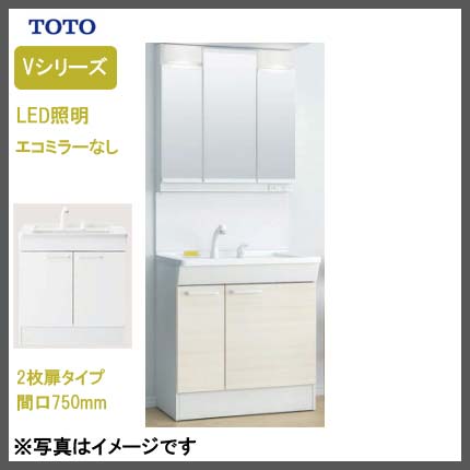 - TOTO Vシリーズ 750幅タイプ 3面鏡(エコミラーなし)LED照明 2枚扉 洗面化粧台
