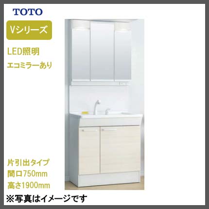 - TOTO Vシリーズ 750幅タイプ 3面鏡(エコミラーなし)LED照明 片引出 洗面化粧台