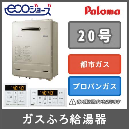 - パロマ ガスふろ給湯器ecoジョーズ20号 屋外壁掛型+ボイスリモコン(都市ガス/プロパン)
